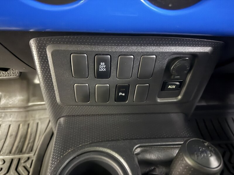 Factory features include a full-time 4WD system, skid plates for enhanced protection, and a rearview camera for added safety. The FJ Cruiser also comes equipped with air conditioning, power windows and locks, and a premium audio system with CD player and auxiliary input. With fuel efficiency rated at 15 MPG in the city and 19 MPG on the highway, this vehicle balances power with practicality.