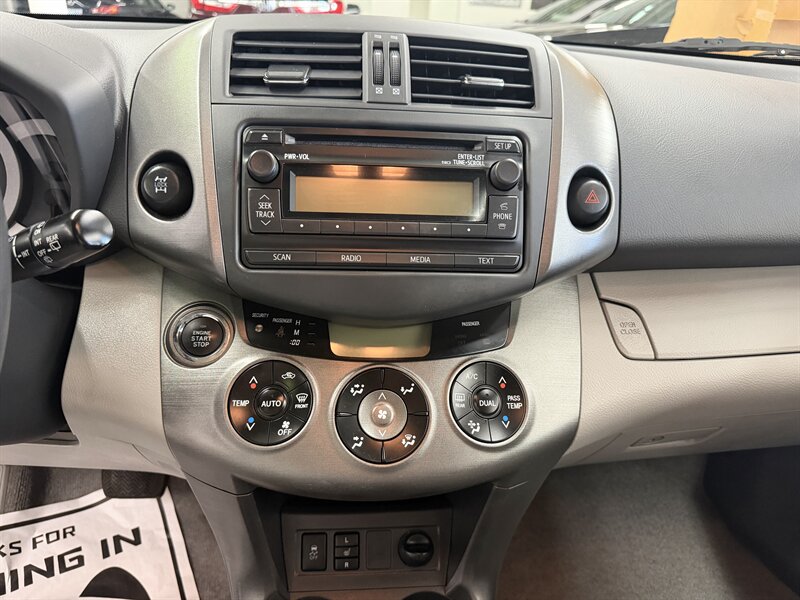 2012 Toyota RAV4 Limited — Silver exterior with Gray leather-trimmed interior. One owner, clean CARFAX, 29 service records. Below 131,000 miles (averaging under 9,000 miles per year) and in excellent overall condition. Powered by the proven 2.5L I4 producing 179 hp and 172 lb-ft of torque, paired with a smooth 6-speed automatic transmission. EPA-rated at 21 MPG city and 27 MPG highway, this RAV4 delivers a balanced blend of efficiency, utility, and everyday comfort. Factory-equipped Limited features include: - Comfort and convenience: leather-trimmed front seats with heating, power-adjustable driver’s seat, supportive seating for five, and a center console with storage. 60/40 split-folding rear seats provide flexible cargo space and additional cargo room when needed. - Climate and visibility: automatic climate control for consistent interior comfort, intermittent wipers, rear privacy glass, and fog lamps for improved visibility in adverse conditions. - Exterior and utility: stylish alloy wheels, roof rails for added cargo-carrying capability, body-color mirrors and trim accents, and a wide-opening rear cargo area for easy loading. - Infotainment and connectivity: factory stereo with AM/FM and CD capability, auxiliary/USB connectivity, Bluetooth hands-free phone and audio streaming, and steering-wheel-mounted audio and phone controls for safe, convenient operation. - Safety and driver aids: comprehensive occupant protection with front, side and full-length curtain airbags, anti-lock braking system (ABS) with electronic brake-force distribution, vehicle stability and traction control systems, tire pressure monitoring, and LATCH child-seat anchors. Many Limited models also include a rearview camera and optional driver-assist features available from the factory. This RAV4 Limited combines Toyota reliability with upscale appointments and practical SUV utility. With a documented single-owner history and consistent maintenance records, it represents a well-cared-for example of a versatile compact SUV. Contact us to schedule a test drive or to request additional details and the complete service history.