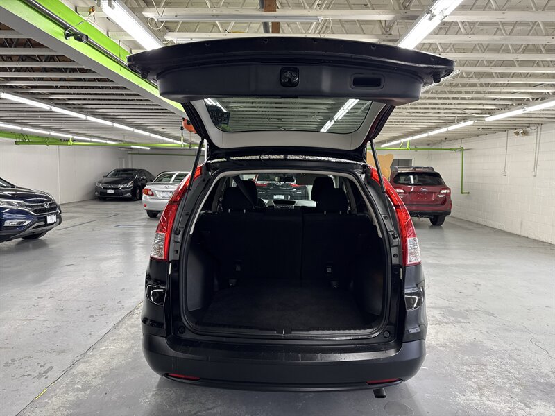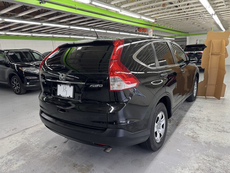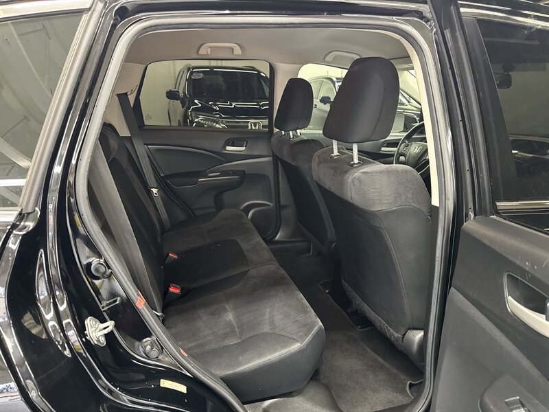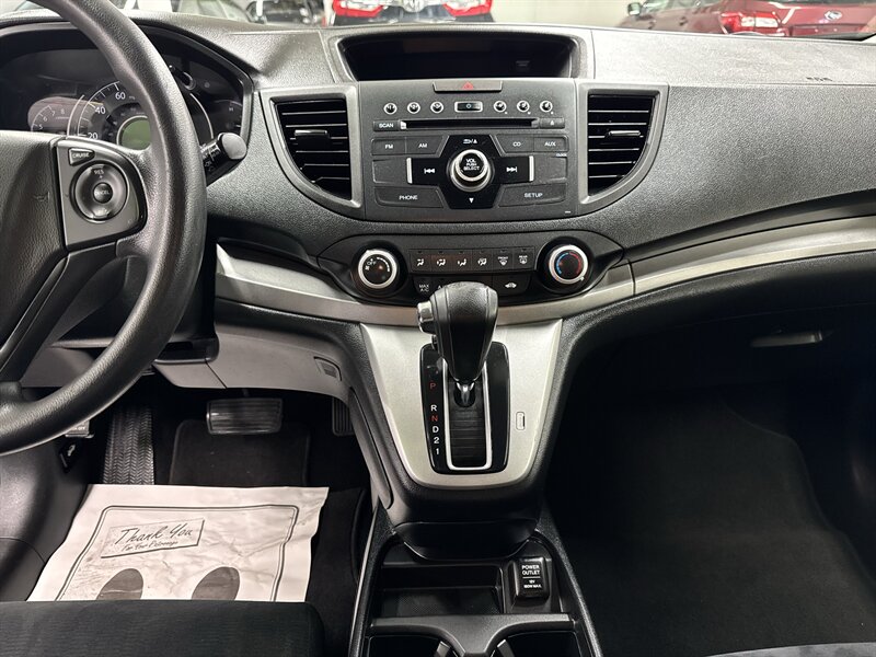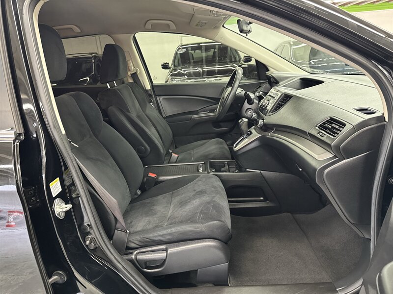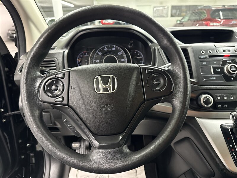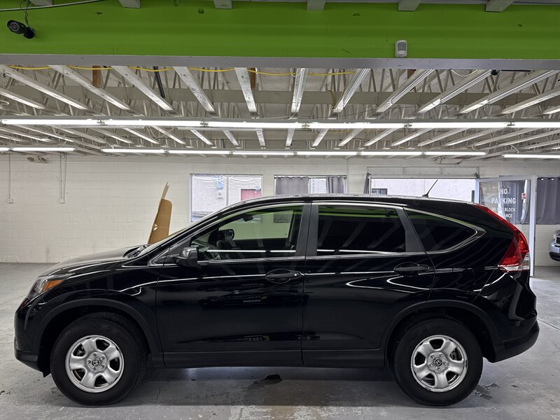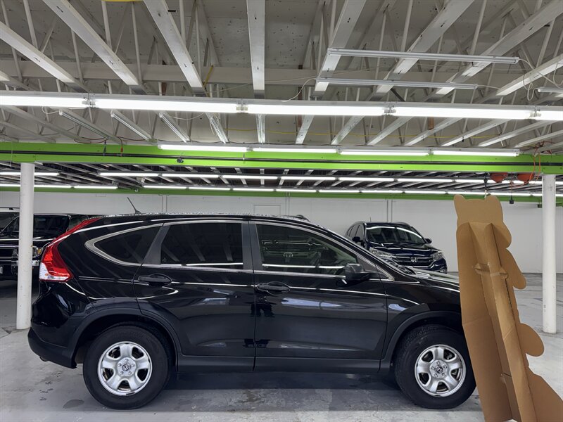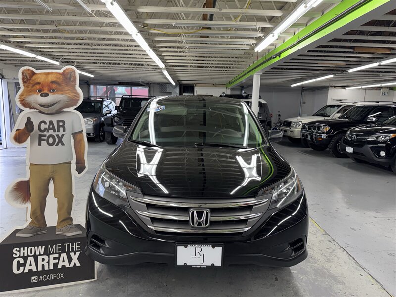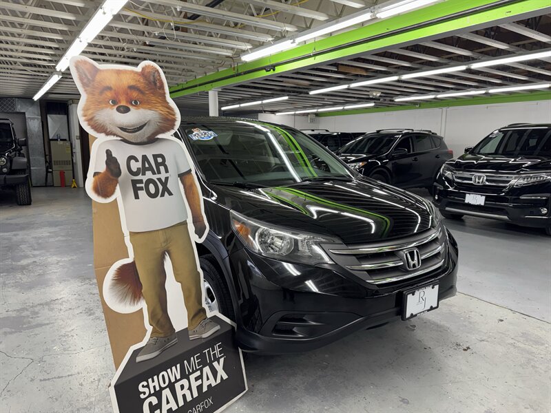 2013 Honda CR-V LX in Crystal Black Pearl with Gray cloth interior — excellent overall condition, clean CARFAX and one previous owner. Powered by a 2.4L i-VTEC I4 (185 hp, 163 lb-ft) mated to a 5-speed automatic, this CR-V returns an EPA-estimated 22 MPG city / 30 MPG highway. Factory-standard equipment includes: - AM/FM/CD audio system with USB and auxiliary inputs, Bluetooth HandsFreeLink, and steering-wheel audio controls - Air conditioning, cruise control, tilt/telescoping steering wheel, remote keyless entry, and power windows/locks - Gray cloth seating for five with a 60/40 split-folding rear seat for expanded cargo flexibility - 16-inch steel wheels with covers, intermittent wipers, and practical cargo area storage - Safety systems: ABS with Electronic Brake Distribution, Vehicle Stability Assist (VSA) with traction control, front and side airbags with side curtain protection, active front head restraints, tire pressure monitoring, and LATCH child-seat anchors A well-maintained, practical compact SUV with a strong service pedigree and solid fuel economy.
