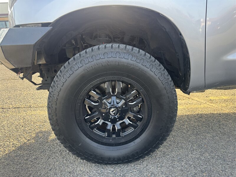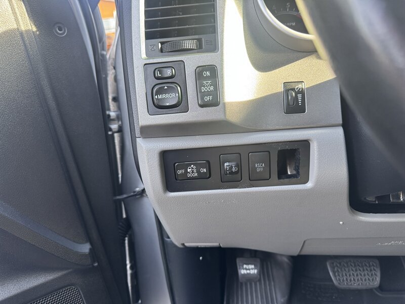 2013 Toyota Tundra Grade — Black exterior with a Black interior, powered by the 5.7L V8 (381 hp, 401 lb-ft) paired to a 6-speed automatic. EPA-rated at 13 MPG city / 17 MPG highway. Vehicle is in excellent overall condition and comes with a clean CARFAX. Factory standard equipment includes: - 5.7L i-Force V8 with 6-speed automatic transmission - Antilock brakes (ABS), traction control and vehicle stability control - Front, side and full-length curtain airbags - Power windows, power door locks and power mirrors; remote keyless entry - Cruise control and tilt/telescoping steering column with steering-wheel controls - AM/FM/CD audio with auxiliary/USB inputs and hands-free phone capability - Air conditioning and durable factory-trimmed seating surfaces - Alloy wheels and factory towing capability Contact us for a detailed walk-through or to arrange a test drive.