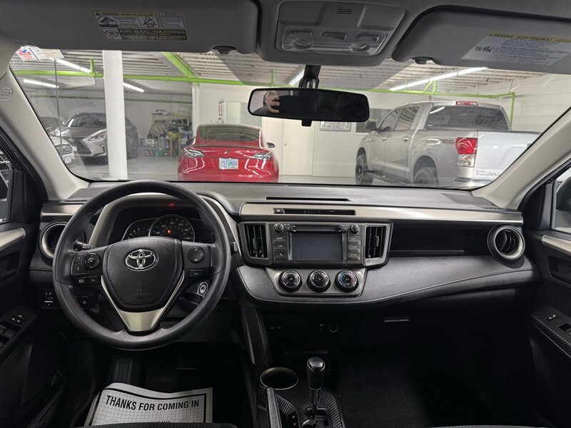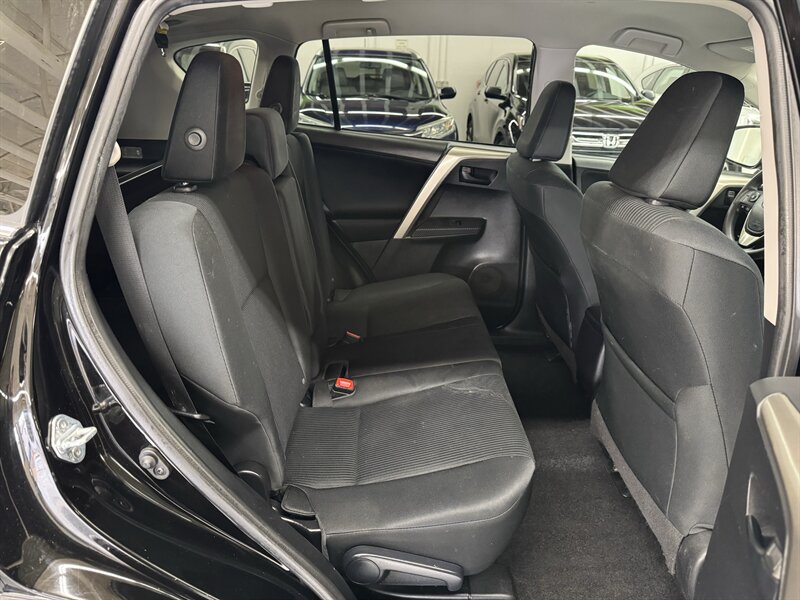 2015 Toyota RAV4 LE — Black exterior / Black interior This clean, well-maintained 2015 Toyota RAV4 LE is in excellent overall condition and comes with a clean CARFAX report (NO ACCIDENT · 18 SERVICE). It’s powered by Toyota’s reliable 2.5L inline-4 engine producing 176 hp and 172 lb-ft of torque, paired with a smooth 6-speed automatic transmission. EPA-rated fuel economy for this vehicle is 22 MPG city and 29 MPG highway, delivering a strong balance of performance and efficiency. Factory-equipped features (standard on the 2015 RAV4 LE) - Powertrain & Driving - 2.5L DOHC 4-cylinder engine (176 hp / 172 lb-ft) - 6-speed automatic transmission for responsive, efficient shifting - Engineered for everyday driving comfort and long-term reliability - Exterior - Sleek black finish - Alloy wheels (factory standard size for LE) - Halogen projector-type headlights for clear nighttime visibility - Integrated rear wiper and practical liftgate design for cargo access - Interior & Comfort - Black cloth upholstery, seating for five - Manually adjustable driver and front passenger seats - 60/40 split-folding rear seat that reclines and folds to expand cargo capacity - Spacious cargo area with practical load-floor and cargo-retention features - Air conditioning with standard vents for front passengers - Power windows and door locks, and remote keyless entry for convenience - Tilt-and-telescoping steering column for an adjustable driving position - Cruise control for relaxed highway driving - Technology & Convenience - Toyota Entune audio system with AM/FM and CD capability - Auxiliary and USB inputs plus Bluetooth connectivity for hands-free calling and wireless audio streaming - Steering-wheel-mounted audio and phone controls to keep attention on the road - Multi-information display and trip computer for fuel, range and trip data - Safety & Security - Antilock Braking System (ABS) with Electronic Brake-force Distribution (EBD) - Vehicle Stability Control (VSC) and Traction Control (TRAC) - Multiple airbags, including front airbags, front seat-mounted side airbags and full-length side curtain airbags - Tire Pressure Monitoring System (TPMS) - LATCH anchors for child-seat installation This RAV4 LE blends practical everyday usability, Toyota build quality, and efficient performance. With a clean CARFAX, documented service history, and excellent overall condition, it’s an attractive choice for buyers who want a dependable compact SUV that checks the boxes for comfort, safety, and economy. To arrange a test drive or request additional details, please contact us.