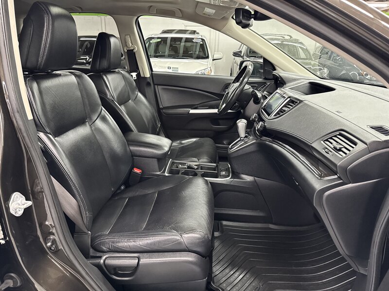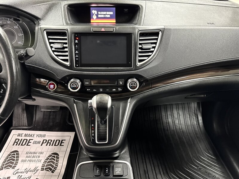 Introducing the 2016 Honda CR-V Touring, a perfect blend of style, performance, and functionality. With only 96,000 miles on the odometer, this vehicle has been driven an average of less than 10,000 miles per year, showcasing its excellent maintenance and care. Finished in an elegant black exterior, this SUV exudes sophistication while providing ample space and versatility for all your driving needs. Under the hood, the CR-V is powered by a robust 2.4L I4 engine that delivers 185 horsepower and 181 ft-lbs of torque. This efficient engine not only provides a responsive driving experience but also achieves impressive fuel economy, with ratings of 25 MPG in the city and 31 MPG on the highway. The Touring trim level is renowned for its extensive list of factory features designed to enhance comfort, convenience, and safety. Key features of this model include: - **Leather-Trimmed Seats**: Enjoy the luxurious feel of leather seating throughout the cabin, providing both style and comfort. - **Heated Front Seats**: Stay warm and cozy during colder months with the heated front seats, perfect for chilly mornings. - **Power Moonroof**: Let in the sunshine and fresh air with the one-touch power moonroof, which adds an open and airy feel to the interior. - **Navigation System**: Navigate with ease using the built-in GPS navigation system, ensuring you reach your destination without any hassle. - **Honda Sensing Suite**: Equipped with advanced safety features, including Collision Mitigation Braking System, Road Departure Mitigation, Adaptive Cruise Control, and Lane Keeping Assist, the Honda Sensing technology enhances your driving confidence. - **All-Wheel Drive (AWD)**: This feature provides added traction and stability, making it an ideal choice for various driving conditions. - **Premium Audio System**: Experience superior sound quality with the upgraded audio system, complete with a subwoofer for an immersive listening experience. - **Bluetooth HandsFreeLink**: Stay connected while keeping your hands on the wheel with Bluetooth connectivity, allowing for hands-free calls and audio streaming. - **Rearview Camera**: Maneuvering in tight spaces is made easy with the multi-angle rearview camera, providing a clear view of your surroundings. This 2016 Honda CR-V Touring is in excellent overall condition and comes with a clean CARFAX report, giving you peace of mind with your purchase. Whether you're commuting, running errands, or embarking on weekend adventures,