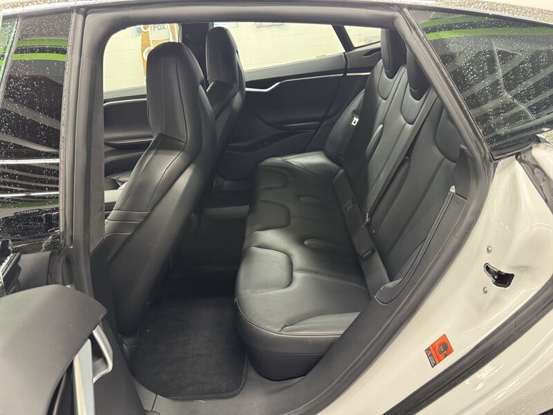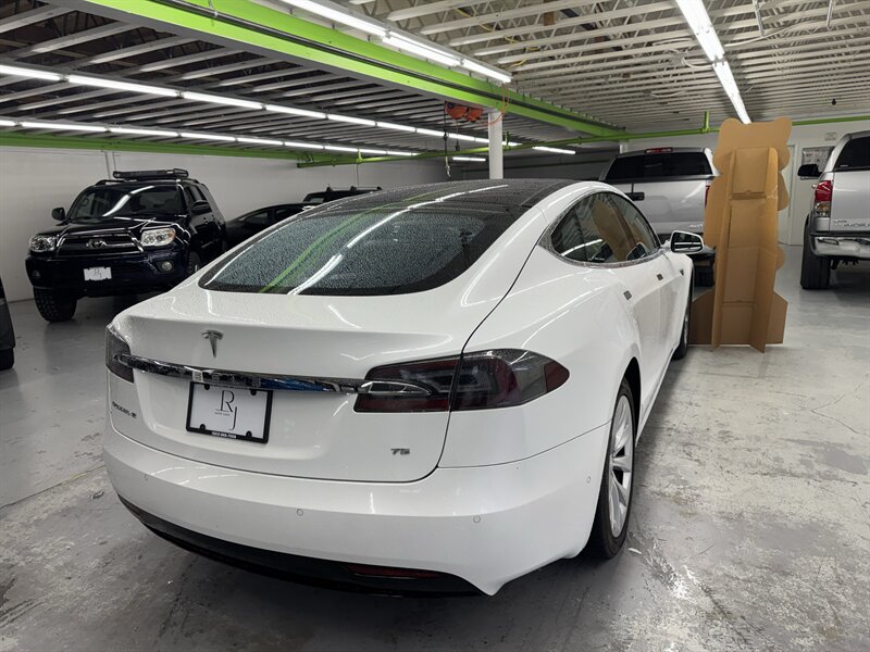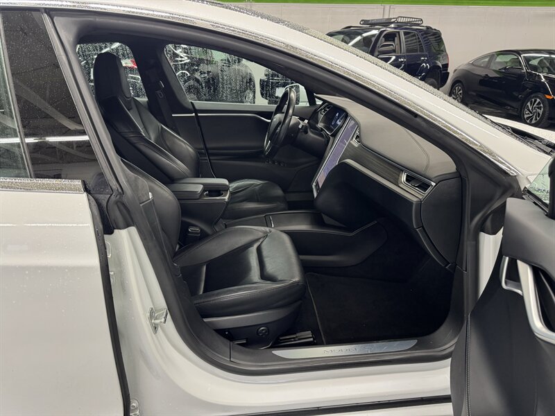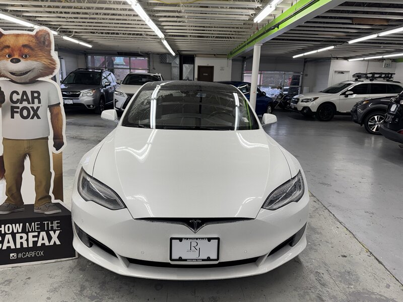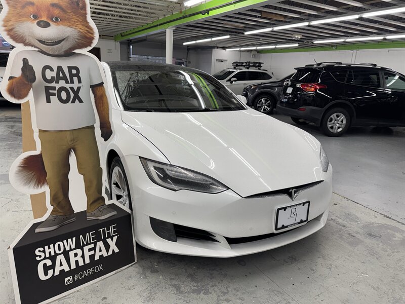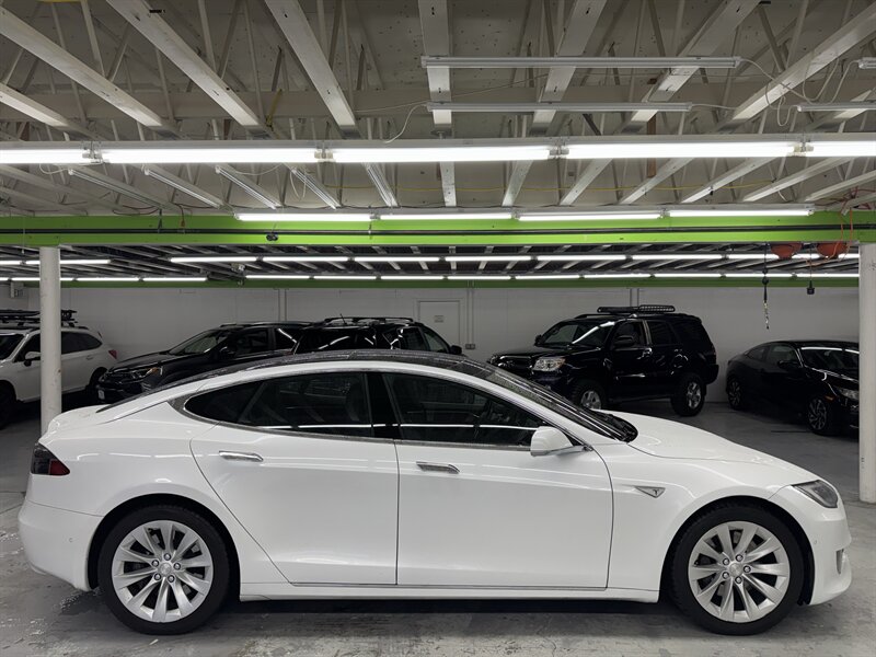 2016 Tesla Model S 75 (2 owners) finished in White Solid with a Black interior. Powered by an electric single-motor producing 315 hp and 325 ft-lbs, the vehicle is factory-equipped with the large center 17-inch touchscreen with navigation and full vehicle controls, Bluetooth and USB connectivity, premium audio, rearview camera and parking sensors, power-adjustable heated front seats with leather seating surfaces, dual-zone automatic climate control, keyless entry with Tesla key fob, alloy wheels and LED lighting, a full complement of airbags/ABS/traction and stability control, and Tesla mobile-app connectivity for remote climate control and charging management. This Model S is in excellent overall condition with glossy original paint showing no scratches, dents, or rust; it has been fully detailed, never smoked in, garage kept, has completed all scheduled maintenance, and has been dealer inspected.