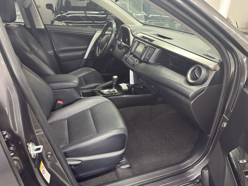 This 2017 Toyota RAV4 Limited in Magnetic Gray Metallic with Black interior is equipped with a 2.5L I4 engine producing 176hp and 172ft. lbs. of torque. Standard factory features include a power moonroof, leather-trimmed seats, heated front seats, dual-zone automatic climate control, Entune Premium Audio with Navigation, Toyota Safety Sense P, blind spot monitor, rear cross-traffic alert, and a power liftgate. With less than 76,000 miles, averaging under 9,000 miles annually, and offering 22 MPG city and 28 MPG highway, this RAV4 Limited is in excellent condition.