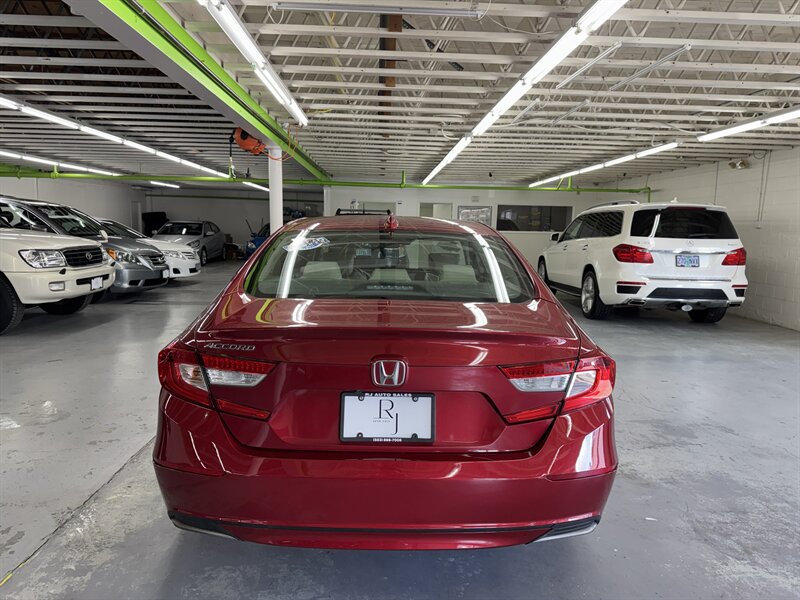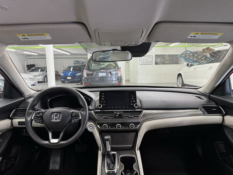 This one-owner 2018 Honda Accord LX pairs efficient turbocharged performance with Honda’s well-earned reputation for reliability and comfort. Powered by the 1.5-liter turbocharged inline-4 that produces 192 horsepower and 192 lb-ft of torque, this Accord delivers responsive acceleration and excellent fuel economy — an EPA-rated 30 MPG in the city and 38 MPG on the highway — making it a great choice for daily commuting or longer road trips. Finished in a vibrant red exterior with a clean white interior, this Accord presents beautifully and has been maintained to a high standard.