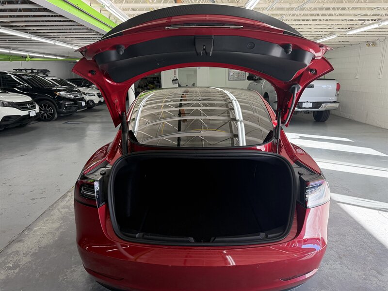 2022 Tesla Model 3 Performance — Solid Black exterior, Black interior, excellent overall condition. Powered by an electric powertrain producing 450 hp and 471 lb-ft of torque, this factory Performance model includes Dual Motor all-wheel drive, lowered sport suspension, 20" Überturbine wheels, red performance brake calipers, aluminum alloy pedals and a carbon-fiber rear spoiler with Track Mode. Standard Tesla features: 15" center touchscreen with navigation and premium audio, phone key with keyless entry, wireless charging, multiple USB-C ports, full glass roof, heated front and rear seats, heated steering wheel, power-adjustable seats, LED lighting, Autopilot (traffic-aware cruise control and lane-assistance) and the vehicle’s advanced camera-based safety suite. Clean CARFAX, one owner.